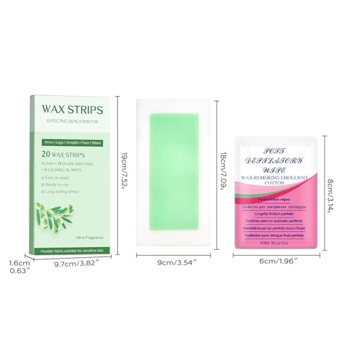 Specification: Wax Strips Body – 98% Natural & Hypoallergenic | Face Hair Removal Strips & Waxing Kit for Women | No-Heat Solution for Arms, Legs, Bikini, Brazilian | Safe for All Skin Types | 20 Pieces