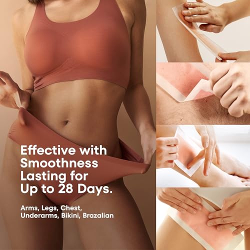 Highly Effective & Results Last for Up to 28 Days: Experience long-lasting smoothness with our waxing strips, effective on large areas like legs and smaller zones like underarms and bikini lines. The results last up to 28 days, making it the best choice for soft, hair-free skin.