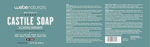 Specification: WEBE Pure Unscented Castile Liquid Soap Refill, 64 Ounce | Vegan & Gluten Free Non-GMO, For Face, Body Wash, Dishes, Pets & Laundry