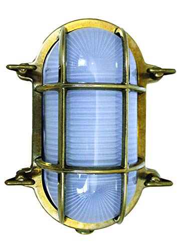 The Oval Brass Bulkhead Light is made by Foresti and Suardi in Italy. This versatile light fixture is rugged enough for exterior used, but rich looking enough for the main salon. The frosted glass lens of the oval brass bulkhead light is protected by a brass framework and is mounted with two screws either to the bulkhead or overhead. Household installation will require drilling holes in the case. Unit has waterproof design for marine bulkhead use; meaning it is not intended to be wired from the back but rather from the bottom using conduit. Professional installation is strongly advised.