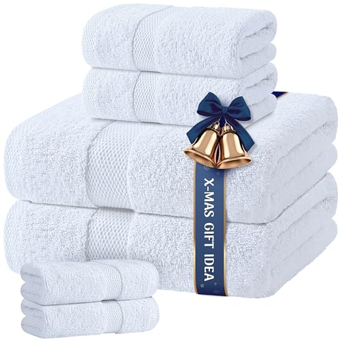 White Bath Towel Set of 6 – 100% Cotton Highly Absorbent Towels for Bathroom, 2 Luxury Bath Towels 650GSM, 2 Hand Towels, 2 Washcloths