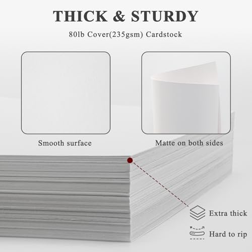 Reliable White Cardstock Sheets: The white card stock is perfect for crafts, business, or event projects. Our white card stock 8.5×11 size offers versatility across tasks, and white cardstock 80lb weight provides excellent rigidity. The white cardstock paper surface resists bleed-through, and the white cardstock 8.5 x 11 format fits seamlessly into everyday print workflows.