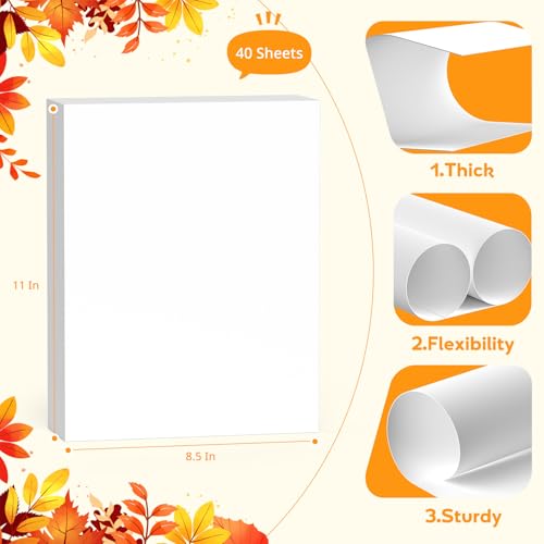 ✨【Easy Creativity】Each package includes 40 sheets white cardstock, measuring 8.5 x 11 in. Our card stock is compatible with die-cut machines, cricut maker, cricut joy embossing folders, ink and stamps, glitter, and more.Use it to make the top of cards, cake decorations, invitation cards, labels, snack boxes, hunting, origami, greeting cards, banners, scrapbooks, party decorations, gift decorations, roll paper flowers and so on.