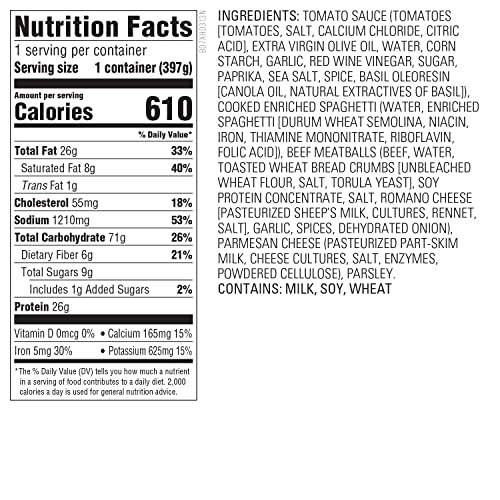 Specification: Whole Foods Market, Spaghetti & Beef Meatballs, 14 Ounce