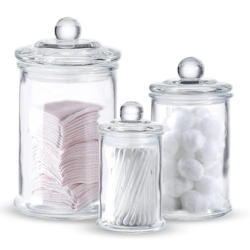 Whole Housewares – Set of 3 Bathroom Canisters – Storage Container Jars – Premium Glass Apothecary Jars with Lids – Small Glass Jar for Kitchen or Bathroom Storage – Decorative Crystal Containers