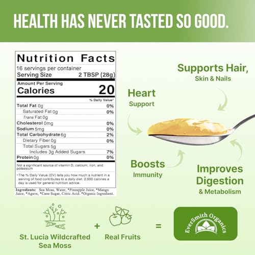🥭WILDCRAFTED SEA MOSS GEL: Our Sea Moss Gel is Made in the USA from wildcrafted sea moss, sustainably harvested from the St. Lucia ocean. Packed with essential vitamins and minerals like iodine, iron, and calcium, Irish sea moss promotes overall health and well-being.