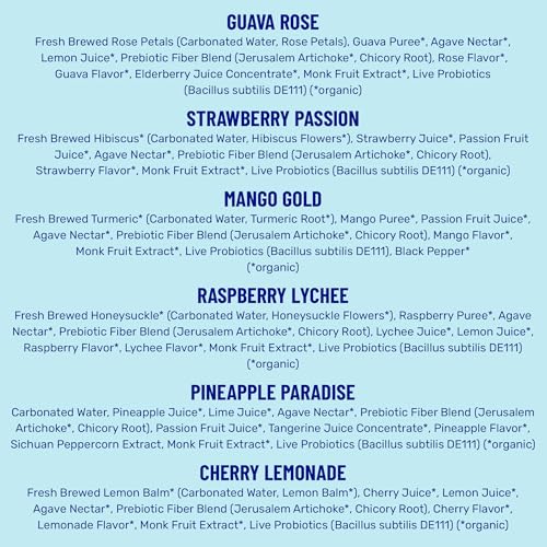 PROBIOTIC DRINK FOR GUT & IMMUNE HEALTH: 1 billion CFUs live vegan probiotics and 5g prebiotic plant fiber (food for your probiotics) in every can. Formulated with microbiome experts and made with real fruit and freshly brewed herbs.