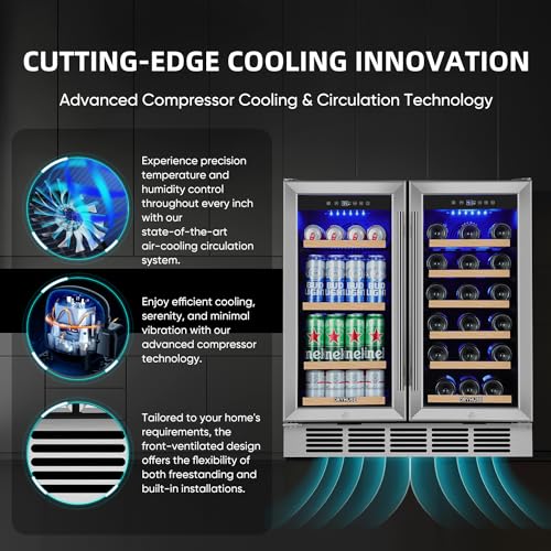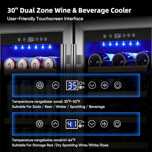 Specification: Wine and Beverage Refrigerator 30 Inch, Beverage Fridge Dual Zone with Upgraded Cooling, Wine Beverage Cooler Built-in or Freestanding, 30 Bottles and 110 Cans Large Capacity