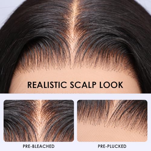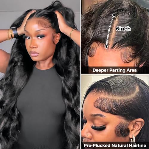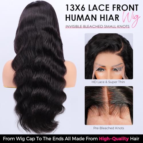 【Body Wave Frontal Wigs Human Hair HD Lace】 : 13×6 HD Transparent Swiss Lace melt perfectly with all skin tone. Slightly Bleached Tiny Knots & Natural Hairline with Baby Hair makes it more natural and beautiful