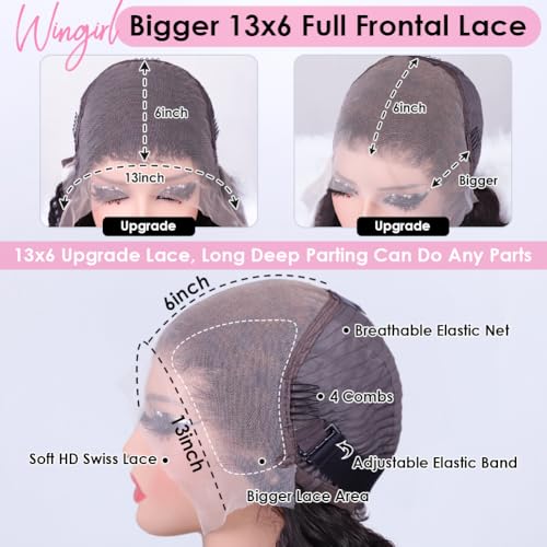 Specification: Wingirl 13×6 Body Wave Lace Front Wigs Human Hair Pre plucked Pre bleached Small Knots With Baby Hair 200 Density Glueless Human Hair Wigs For Women 28Inch HD Lace Frontal Wig With Soft