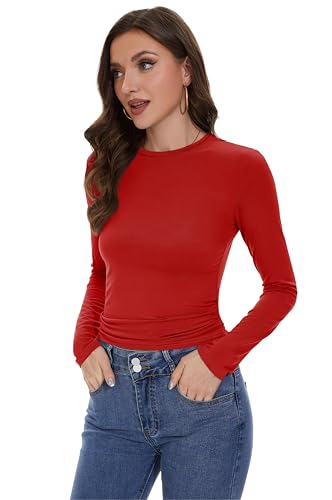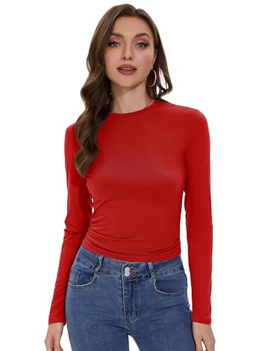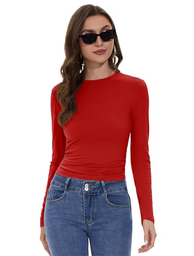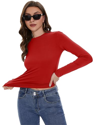 Womens Long Sleeve Shirts Basic Tees Y2k Slim Fit T Shirt Crew Neck Trendy Crop Top Casual