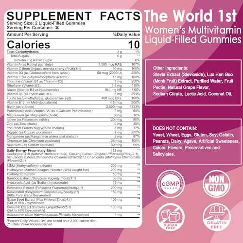 Specification: Womens Multivitamin Gummy, Methylated Multivitamin for Women, Biotin, Methylfolate, Iron, Collagen, Vitamins A C D, B Complex, Antioxidants for Women’s Daily Support, Beauty, Immune, No Sugar, 60 Cts