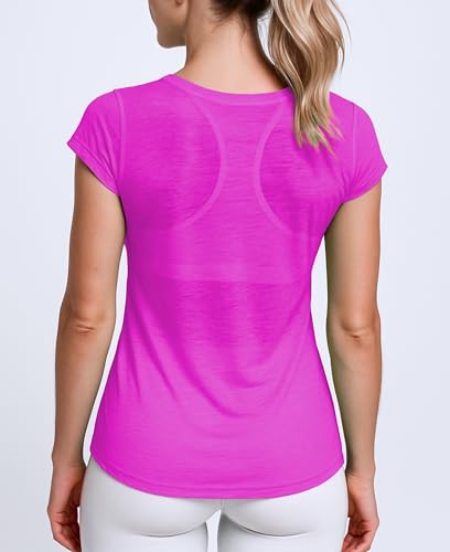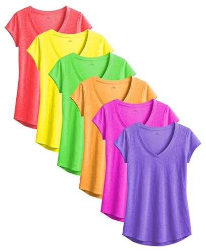 Women’s V Neck T Shirts | Short Sleeve Tops | Flowy Slub Burnout Fabric | Active Casual Workout |Multi Packs Colors