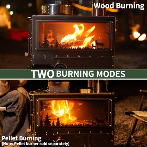 PELLET BURNER DESIGN: The removable top plate of the wood burning stove supports both wood and pellet burning, making it convenient for outdoor use. The package does not include the pellet burner, which can be purchased at the CAMPJOURNEY store.