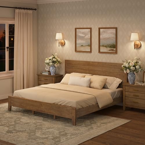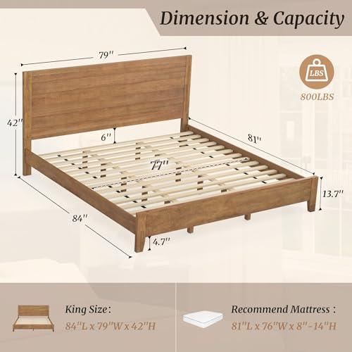 Specification: Wood Platform Bed Frame King Size with Headboard, Acacia Wood, No Box Spring Needed, Easy Assembly, Dark Wood