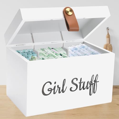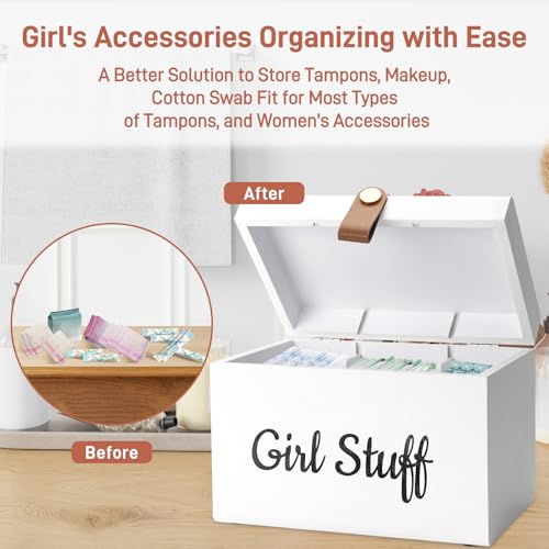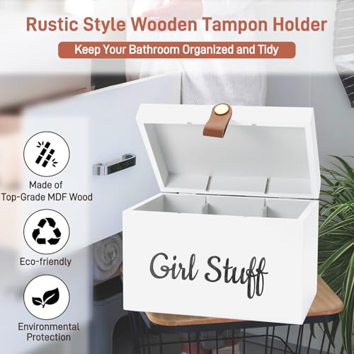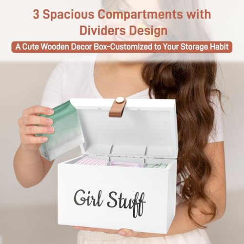【Wooden Girl Stuff Tampon Box with Lid for Bathroom】Keep your bathroom neat and organized with this stylish feminine product organizer. Featuring a spacious interior with 3 compartments, it effortlessly stores tampons, cotton swabs, cotton balls, hairpins, and more.