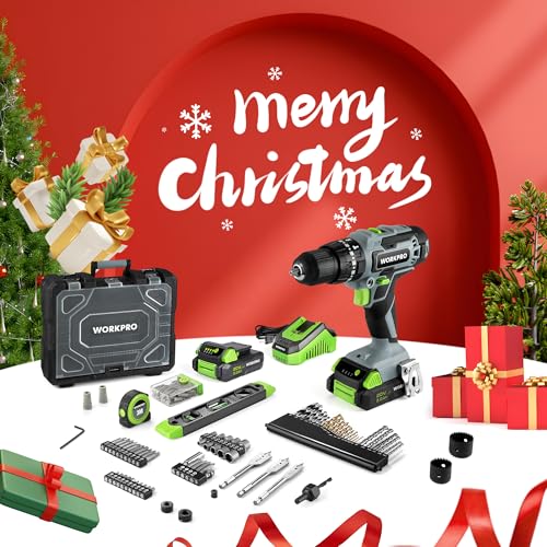 Specification: WORKPRO 20V Max Cordless Drill Driver Set, Electric Power Impact Drill Tool with 100 Pieces Accessories, 1/2” Chuck Impact Drill Kit with Portable Case, 2 x 2.0Ah Li-ion Batteries with Fast Charger