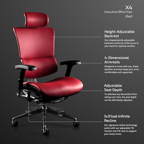 Specification: X-Chair X4 High End Executive Chair, Red Leather with Headrest – Ergonomic Office Seat/Dynamic Variable Lumbar Support/Floating Recline/Stunning Aesthetic/Adjustable/Perfect for Office or Boardroom
