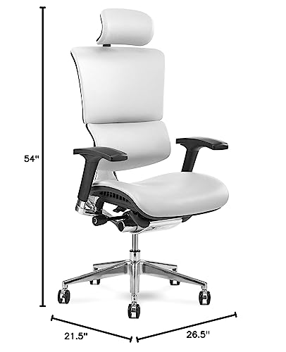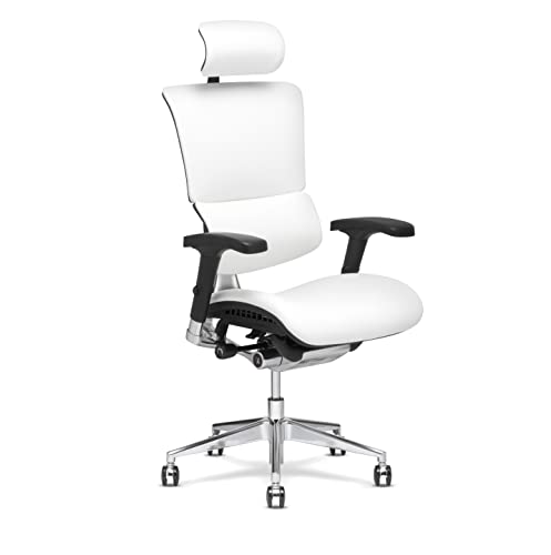X-Chair X4 High End Executive Chair, White Leather with Headrest – Ergonomic Office Seat/Dynamic Variable Lumbar Support/Floating Recline/Stunning Aesthetic/Adjustable/Perfect for Office or Boardroom