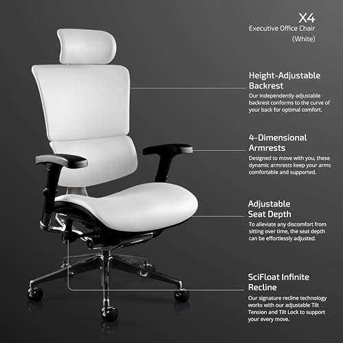 Specification: X-Chair X4 High End Executive Chair, White Leather with Headrest – Ergonomic Office Seat/Dynamic Variable Lumbar Support/Floating Recline/Stunning Aesthetic/Adjustable/Perfect for Office or Boardroom