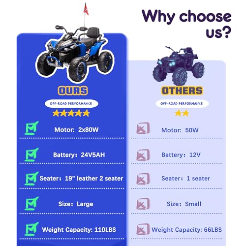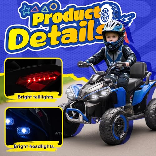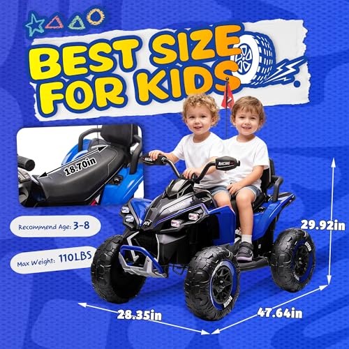 Specification: XL 2-Seater Kids Ride on ATV 24V Ride on Toys for Big Kids W/Parents Control, 4-Wheel Shock Absorber, Electric ATV Car with Music, Lights, Bluetooth, Blue