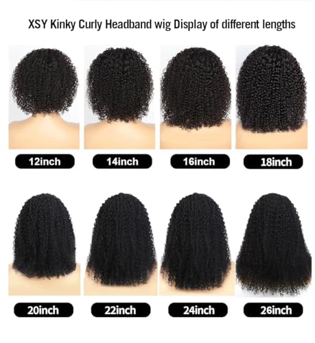 Specification: XSY Headband Wig Human Hair Kinky Curly 20 Inch Headband Wigs for Black Women Deep Curly Human Hair Wigs None Lace Front Wig 150% Density Natural Black Color