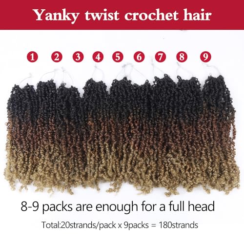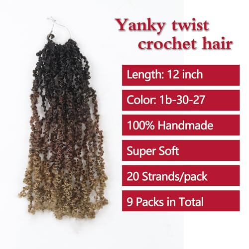 Yanky Twist Crochet Hair, PILLUGER Yaki Twists Hair Micro Spring Twist Braids,9 Packs Pre-looped passion Twist Brown Senegalese With Curls Crochet Synthetic Hair Extensions(1B/30/27)