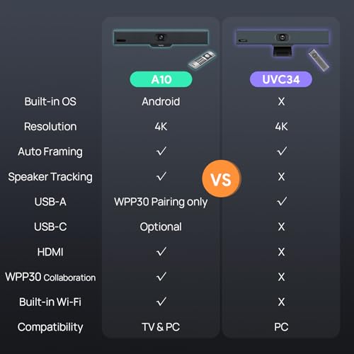 4K 30FPS Webcam – UVC34 built-in 120° wide-angle webcam, everyone in the conference room can be seen in the screen, without adjusting the camera, which is effectively reducing manual adjustments during the meeting, and make meetings more convenient.