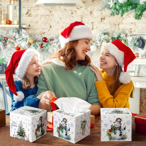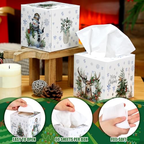 Yeaqee 6 Pack Large Christmas Facial Tissue Cube Boxes Square 480 Sheets Paper Christmas Tree Reindeer Snowflake Xmas Facial Tissues Cube Box for Xmas Winter Home Bathroom Kitchen Car
