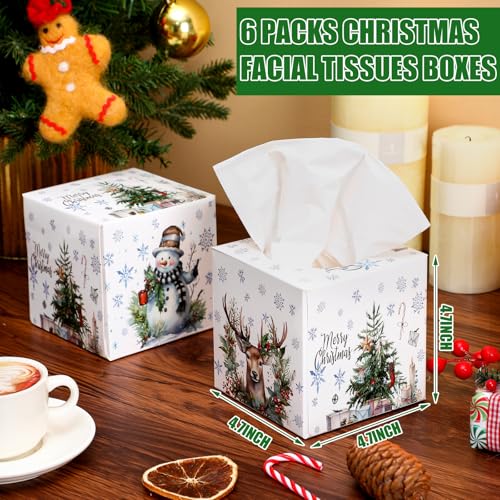 Specification: Yeaqee 6 Pack Large Christmas Facial Tissue Cube Boxes Square 480 Sheets Paper Christmas Tree Reindeer Snowflake Xmas Facial Tissues Cube Box for Xmas Winter Home Bathroom Kitchen Car