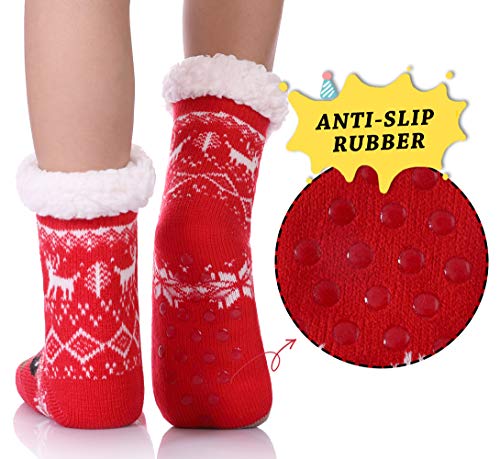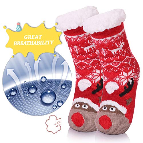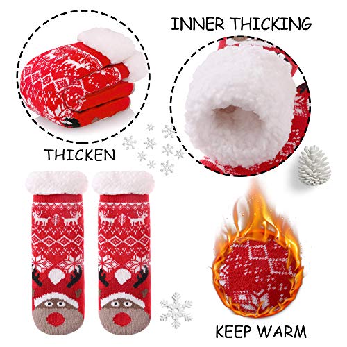 Yebing Kids Boys Girls Slipper Socks Cute Animal Fuzzy Winter Warm Fleece Lining Christmas Socks With Grippers