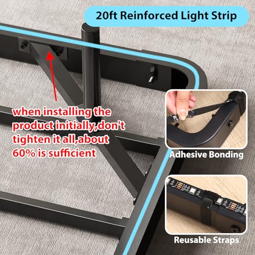 MULTI-MODE LED LITHES – The bed frame with RGB light strips can be adjusted at any time through the APP, providing a variety of colors, brightness and flashing modes. When playing music, the LED lights will also dance to the beat, ideal for nightlights, movie nights, or romantic settings