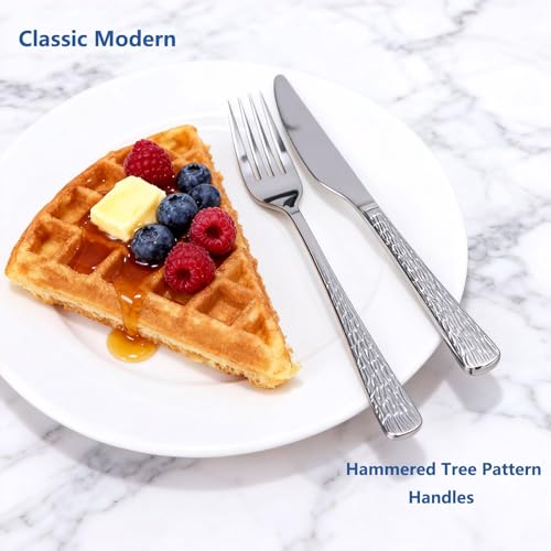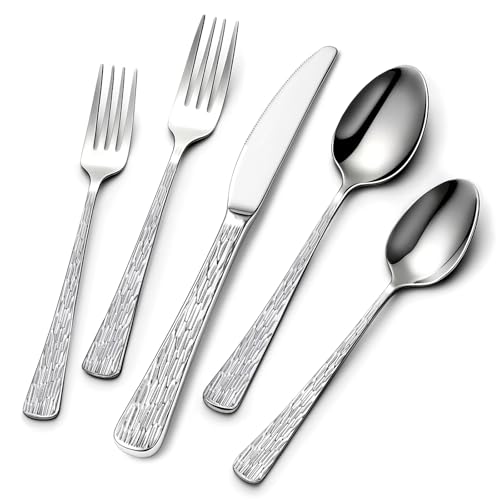Specification: Yoehka 60-Piece Hammered Silverware Set for 12, Stainless Steel Flatware Set with Tree Pattern Handles, Mirror Polished Cutlery/Utensils Set for Home, Restaurant, Hotel, Dishwasher safe