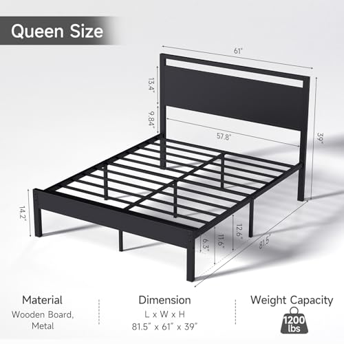 Specification: Z-hom Queen Bed Frame with Modern Wood Headboard & Footboard, Upgraded Heavy Duty Metal Sturdy Bed Frame Queen Size, Stable Platform Bed Furniture Bed Storage, No Noise, No Box Springs, Black