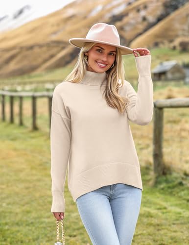 Zeagoo Women’s Turtleneck Sweater 2025 Fall Winter Chunky Knitted Pullover High Low Hem Trendy Basic Jumper Top
