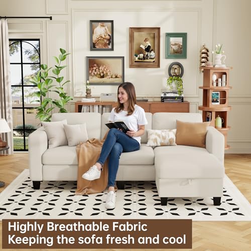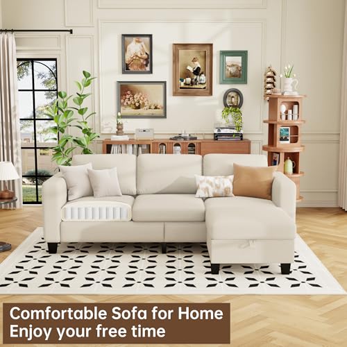 ZeeFu Sectional and Sofa Couches for Living Room – 78” 3 Seater L-Shaped Modular Couch with Storage Ottoman – Modern Linen Fabric Upholstered Sofa Set for Small Space Apartment Office
