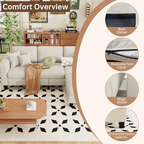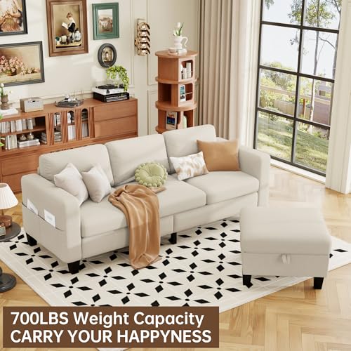 Specification: ZeeFu Sectional and Sofa Couches for Living Room – 78” 3 Seater L-Shaped Modular Couch with Storage Ottoman – Modern Linen Fabric Upholstered Sofa Set for Small Space Apartment Office