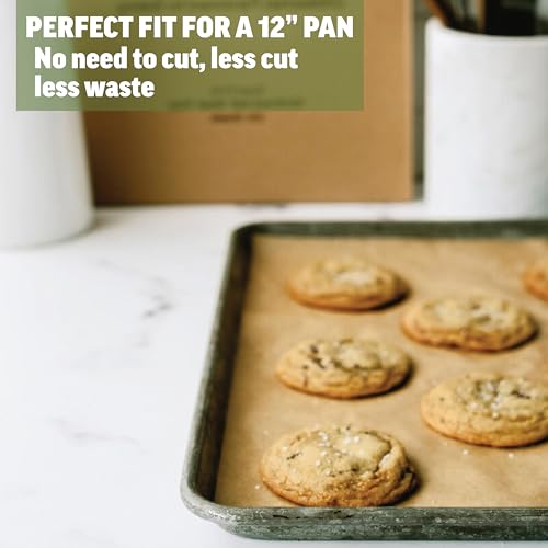 The 12×16 parchment paper fits exactly inside the inner lining of the half sheet pan without overflowing or being too short like others. Many other precut parchment paper sizes are available for endless uses such as cakes, cookies, pizza, bread, wraps, tamales, and so much more. Since these are all natural, there can be slight color variations with each roll of parchment paper.
