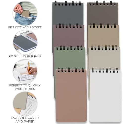 ZICOTO Aesthetic Pocket Notebooks Set Of 8 – Small 3×5 Spiral Notepads With Lined Pages – The Perfect Little Mini Note Pads to Stay Organized and Boost Productivity at Work or School