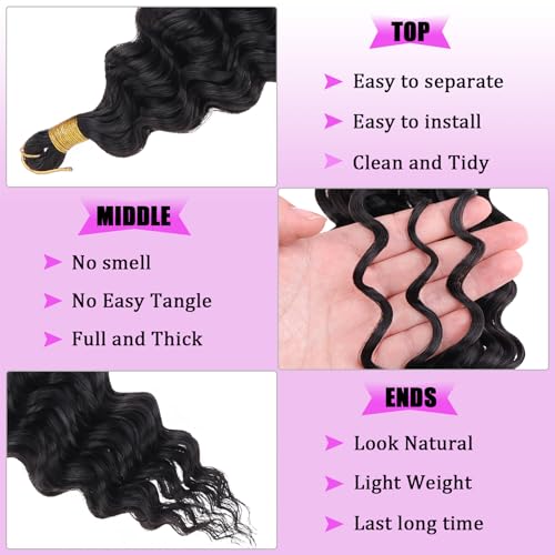 ZRQ Deep Wave Crochet Hair Natural Black 18 Inch 3 Packs Ocean Wave Curly Braiding Hair for Boho Braids Synthetic Curly Crochet Hair For Women #1B
