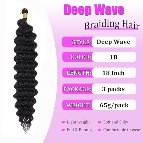 Specification: ZRQ Deep Wave Crochet Hair Natural Black 18 Inch 3 Packs Ocean Wave Curly Braiding Hair for Boho Braids Synthetic Curly Crochet Hair For Women #1B