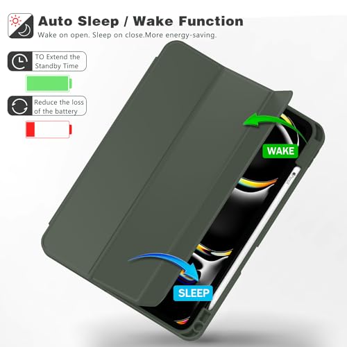 Specification: ZryXal New iPad Pro 13 Inch Case (M5) 2025 / (M4) 2024 with Pencil Holder, Smart iPad Case [Support Pencil Pro and Pencil (USB-C)], Support Touch ID and Auto Wake/Sleep (Dark Green)