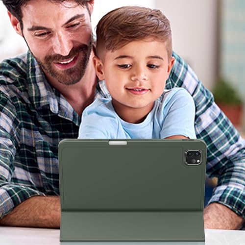 ZryXal New iPad Pro 13 Inch Case (M5) 2025 / (M4) 2024 with Pencil Holder, Smart iPad Case [Support Pencil Pro and Pencil (USB-C)], Support Touch ID and Auto Wake/Sleep (Dark Green)