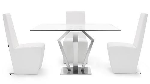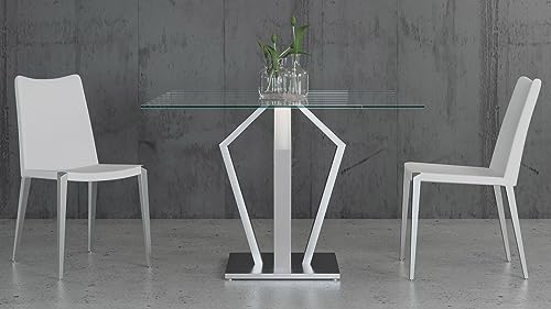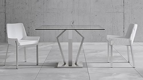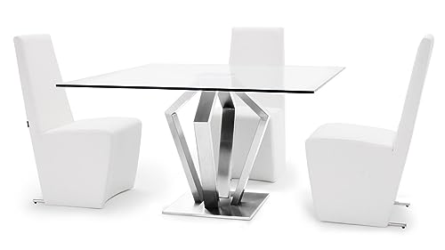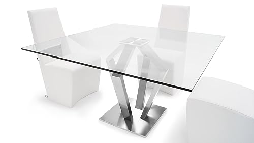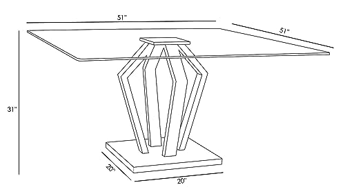 Specification: ZURI Modern Aiden 51″ Square Glass Dining Table with Brushes Stainless Steel Base