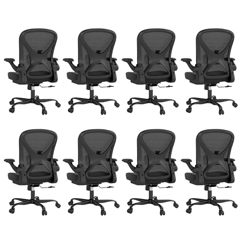 ZZH Ergonomic Office Chair Set of 8 with Adjustable Lumbar Support, Mesh Home Office Desk Chair with Wheels and Flip-up Arms, Black